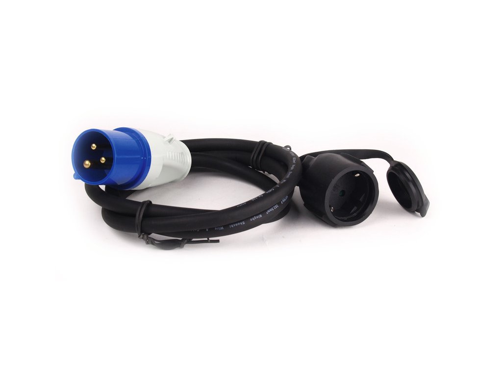 - Kábel je vybavený CEE zástrčkou a Schuko zásuvkou, čo umožňuje univerzálne pripojenie