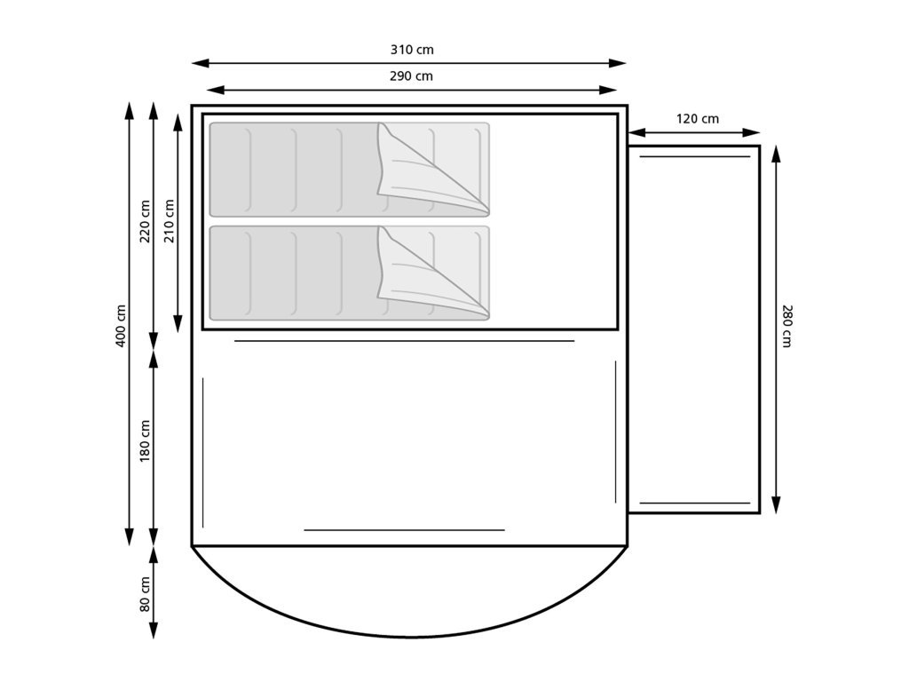 - Vrátane pumpy, vnútorného stanu, podlážky a kolíkov