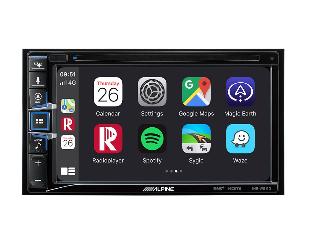 INE-W611D je vynikajúcou voľbou, ak hľadáte navigačný a multimediálny systém s maximálnym využitím médií. Môžete prehrávať disky DVD a CD, počúvať digitálne rádio DAB , pripojiť svoj smartfón a používať Android Auto a Apple CarPlay, streamovať hudbu cez Bluetooth, pripojiť externé zdroje HDMI (napríklad digitálny TV tuner DVB-T2) alebo používať pamäťové zariadenia USB na prehrávanie hudobných a video súborov.
