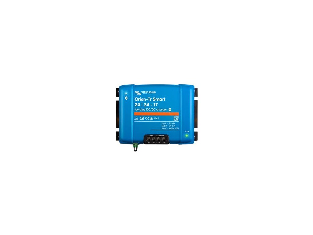 Inteligentná DC-DC nabíjačka Victron Energy Orion-Tr je profesionálna trojstupňová adaptívna DC-DC nabíjačka so zabudovanou funkciou Bluetooth. Je určená na použitie v duálnych batériových systémoch vo vozidlách alebo lodiach, kde sa na nabíjanie prevádzkovej batérie používa (inteligentný) alternátor a štartovacia batéria. Jednotku je možné monitorovať a programovať cez Bluetooth a ovládať na diaľku pomocou diaľkového vypínača. Nabíjačka je vybavená aj mechanizmom na detekciu chodu motora. Nabíjačka Orion Tr-Smart sa môže používať v 12 V alebo 24 V systémoch a je vhodná pre olovené aj lítiové akumulátory. K dispozícii sú modely s výkonom až do 400 W. Okrem toho je možné paralelne zapojiť neobmedzený počet jednotiek na zvýšenie výstupného výkonu. Je vhodná na použitie pri vysokých teplotách okolia do 55 °C a pri plnom menovitom výstupnom výkone do 40 °C.Dodatočné parametre