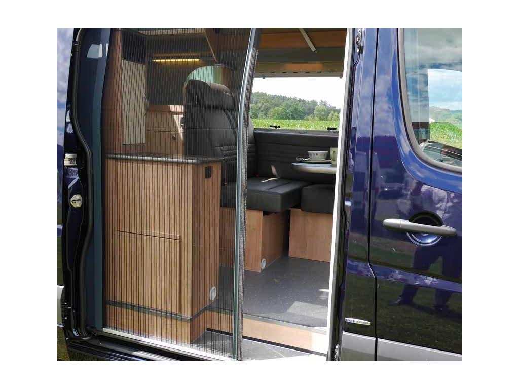 Dvere REMIcare so sieťkou proti hmyzu 1960 x 1360 mm, pre Mercedes Sprinter a podobné vozidlá. Dvere so sieťkou proti hmyzu majú obvodový rám s dokonalým uzatváraním. Domáca dekorácia vo forme medových plástov vytvára slávnostnú atmosféru. Je zaručená dobrá viditeľnosť a cirkulácia vzduchu. Ste chránení aj pred najmenšími škodcami, štípajúce mušky zostávajú vonku.Dodatočné parametre