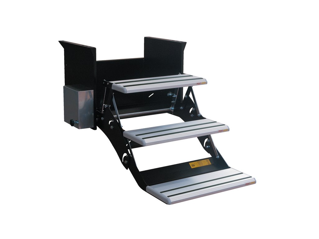 Elektrický 3-stupňový vstupný schodík pre karavany, obytné vozidlá a stavby pre karavany.