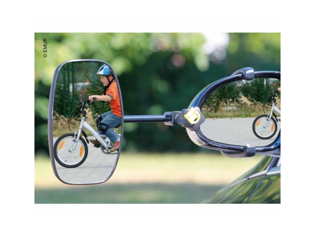 Zrkadlo EMUK XL, tvarované, bezpečné a spoľahlivé, veľmi jasný zrkadlový obraz bez vibrácií. Aerodynamická hlava zrkadla s veľkým zorným poľom. Bleskurýchla montáž bez použitia náradia vďaka krídlovej skrutke. Možnosť nastavenia zo sedadla vodiča a spolujazdca.Zrkadlo pre: