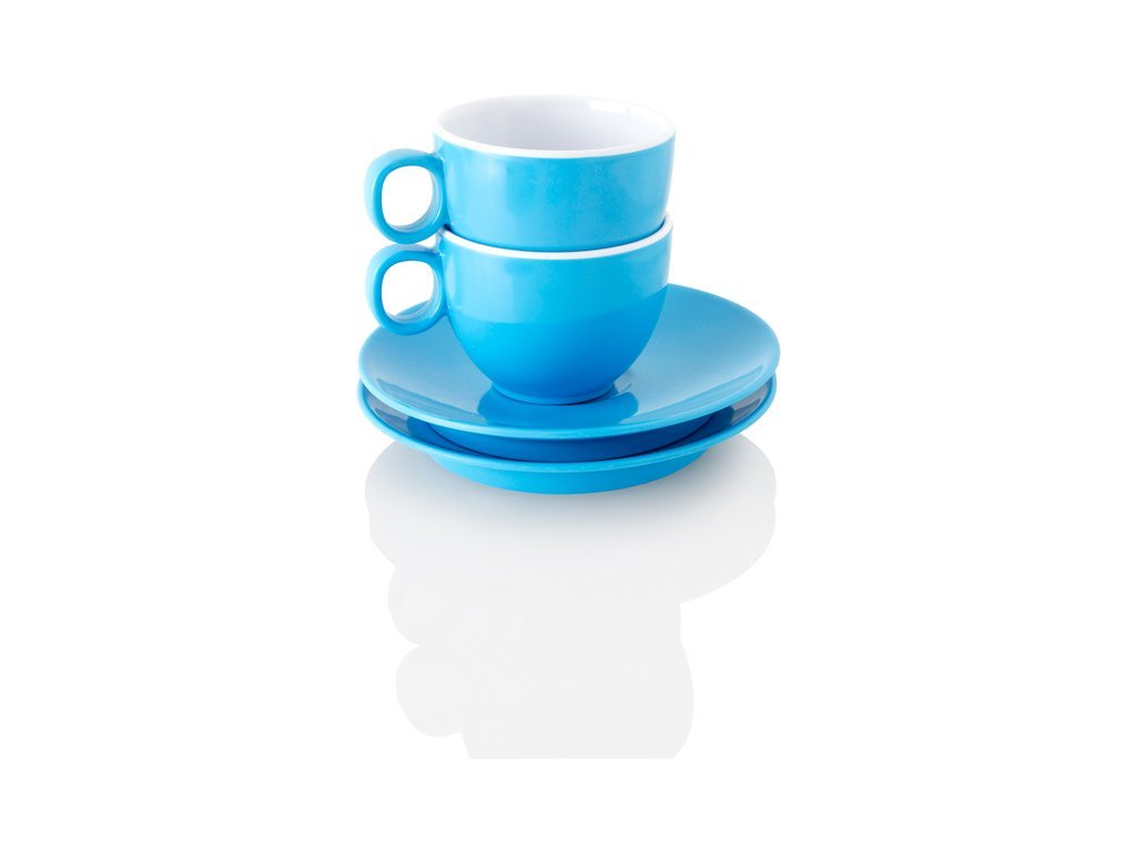 Sada 2 kusov melamínových hrnčekov na espresso v krásnej modrej farbe.