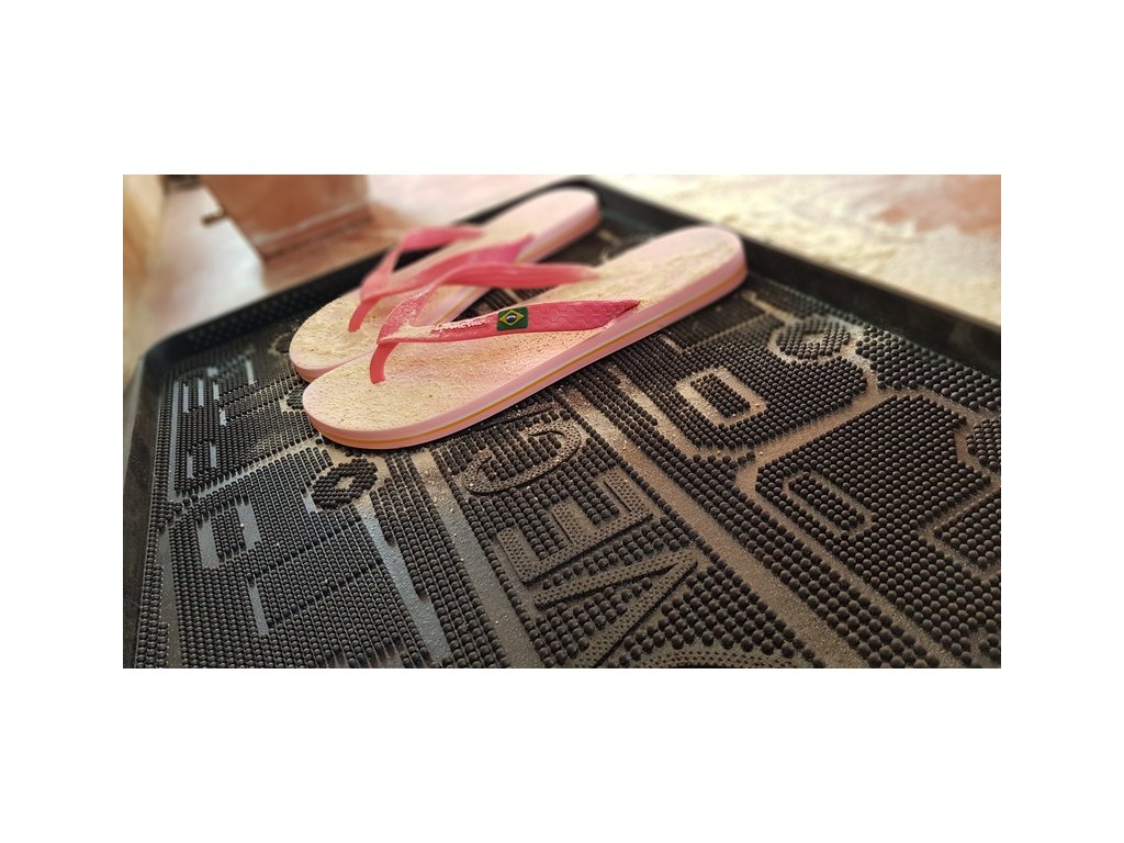 Praktická gumová rohožka s motívom obytného vozidla slúži ako odkvapkávač na špinavé topánky.