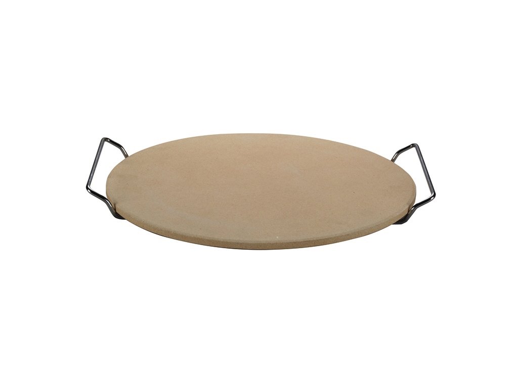 - Súčasťou dodávky je praktický pochrómovaný držiak, pomocou ktorého môžete kameň na pizzu ľahko umiestniť na gril a zase ho vybrať