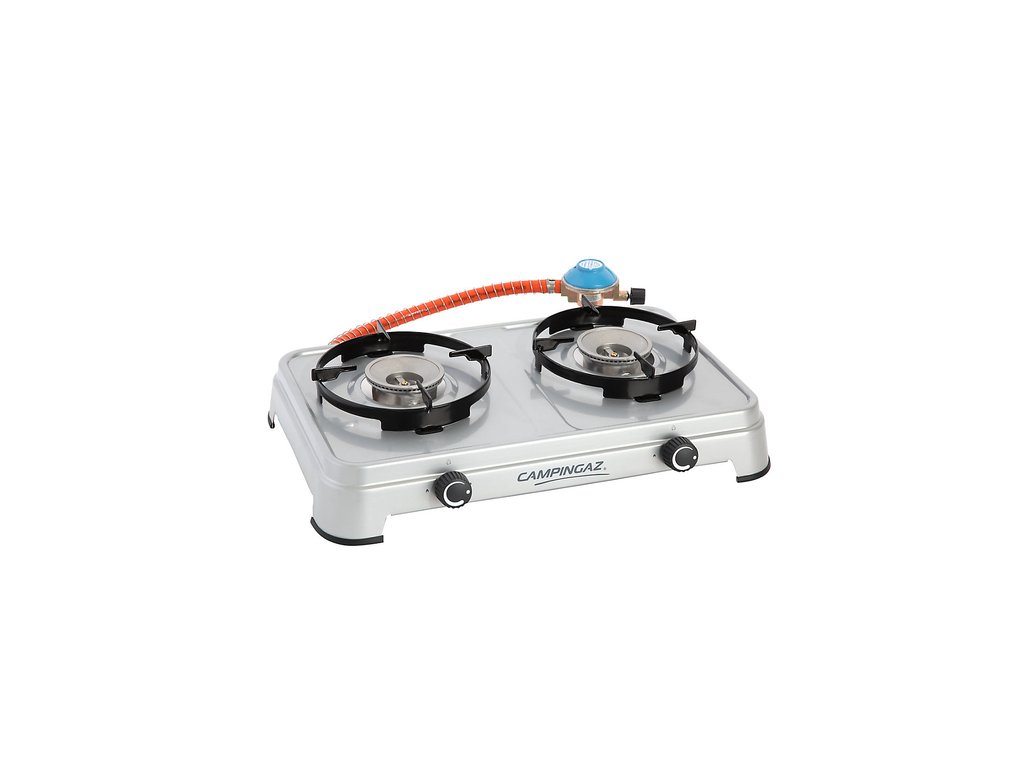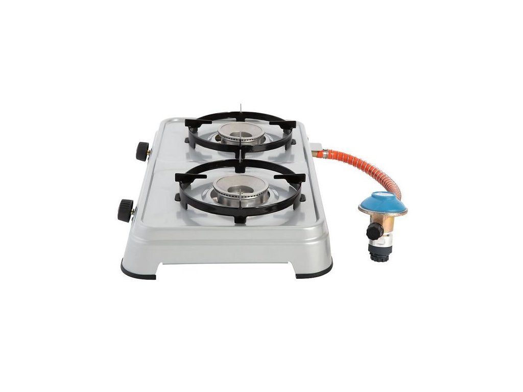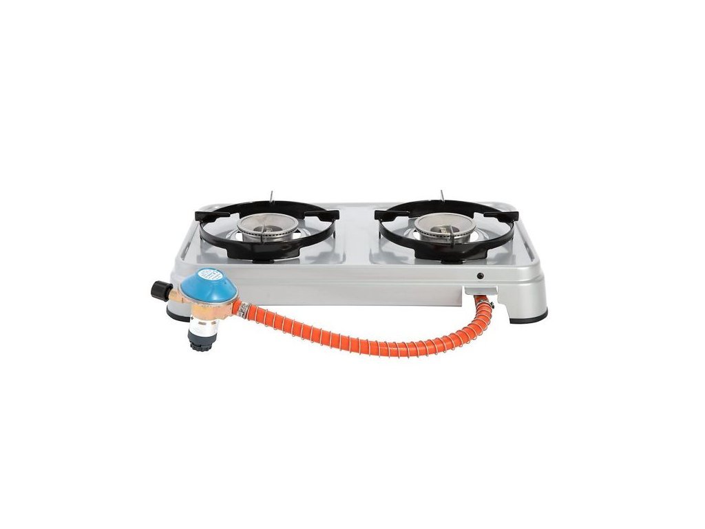 Plynový varič s 2 horákmi s pevne namontovanou hadicou a regulátorom pre kartušu Easy-Click Plus je skvelý základný model variča pre každého táborníka