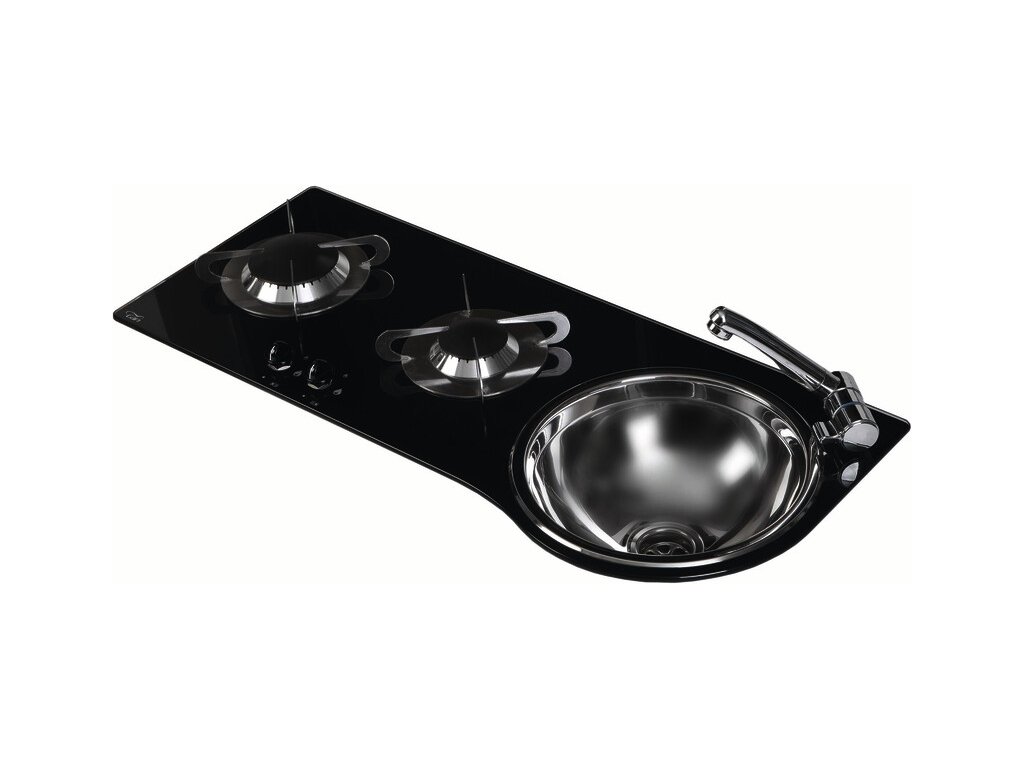 Štýlová vstavaná varná doska „Gas on Glass“ s 2 horákmi a pologuľovým drezom
