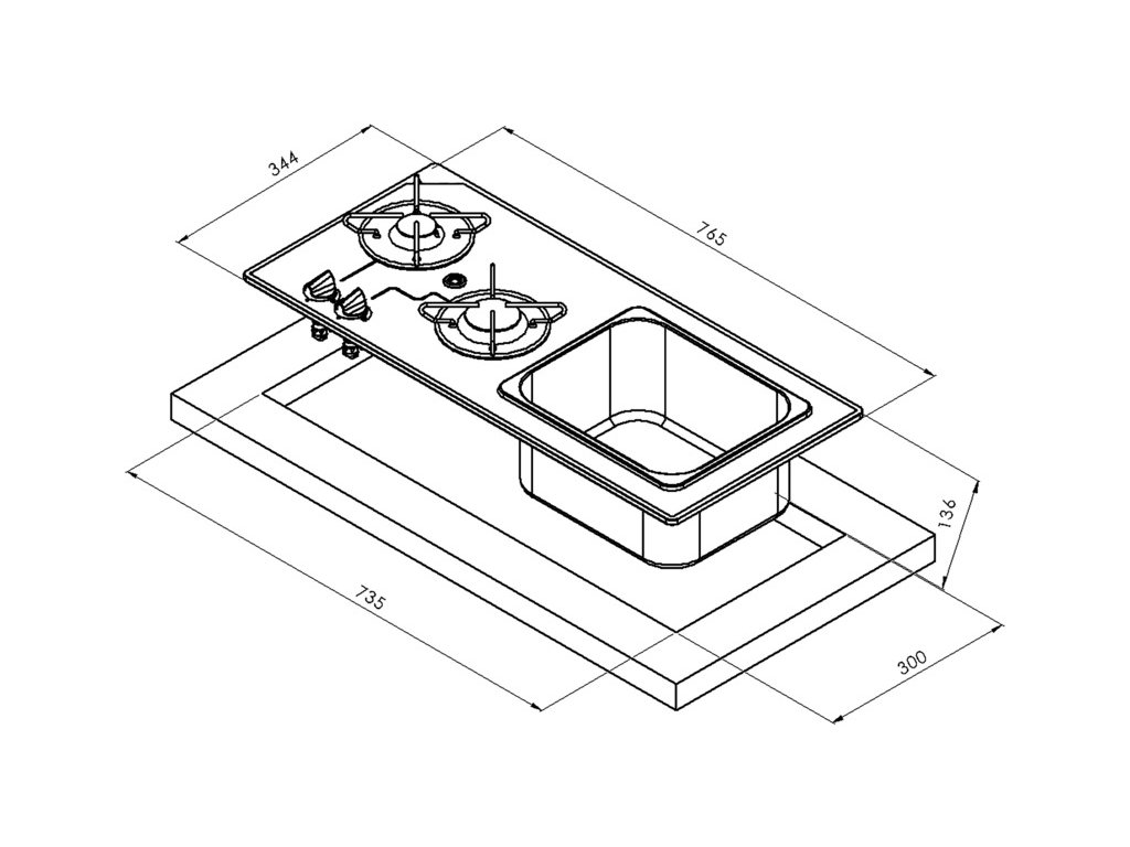 Kombinovaný varič s drezom CARBEST - 2 plamene s bezpečnostným sklom