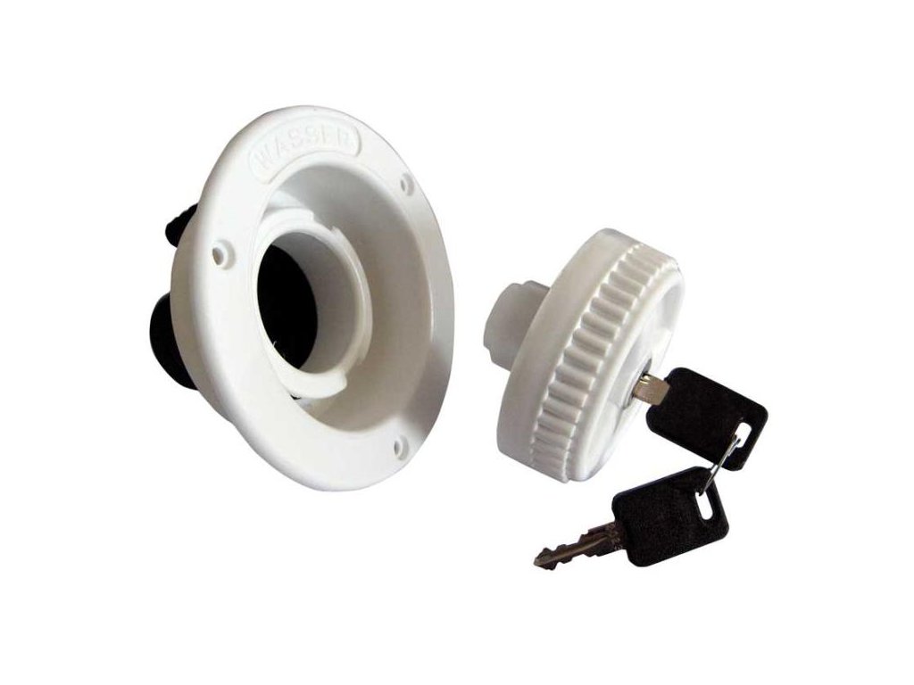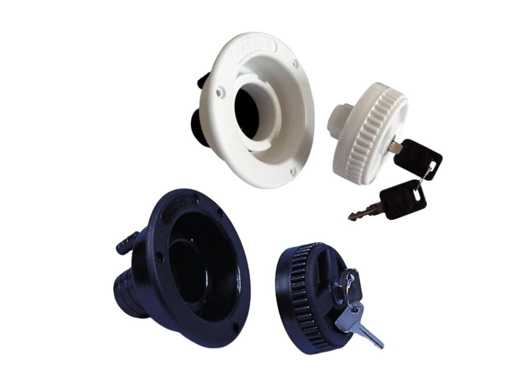 Krátke plniace hrdlo, plastové. Inštalačný otvor Ø 85 mm. S krátkou pripojovacou prírubou Ø 40 mm. Ventilátor/prepad s 10 mm prípojkou, uzamykateľný.Dodatočné parametre