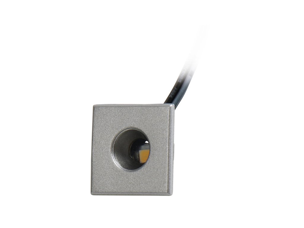 LED 12V jednobodová strieborná, 0,5W, veľkosť: 18x18mm, montážna hĺbka: 9mm, farba svetla: neutrálna biela, 50lm, EEI: ADodatočné parametre