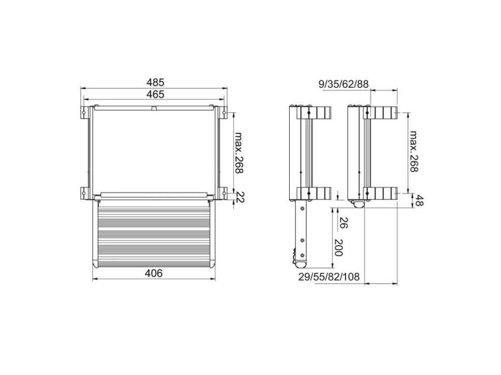- Schodík možno prispôsobiť rôznym typom podvozkov a výškam schodíka pomocou montážnych konzol v 4 rôznych polohách (29/55/82/108 mm)