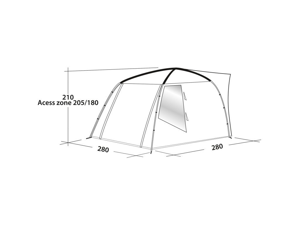 - Prilieha tesne k vozidlu a je možné ho ľahko a rýchlo pripevniť k vozidlu alebo od neho oddeliť a nechať ho voľne stáť v kempe
