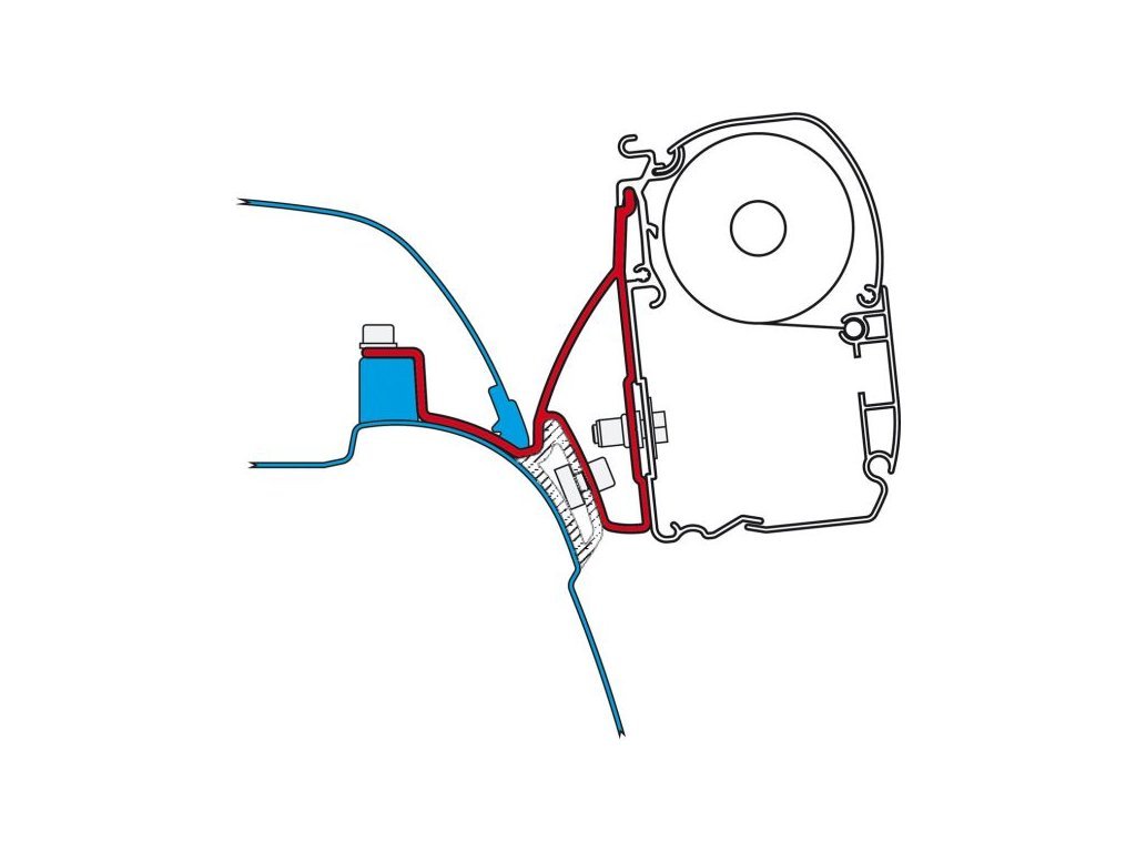- Markíza pre VW T5/T6 California (s adaptérom pre spaciu strechu s bočnou lištou VW keder) - adaptéry sú skrutkované na originálne body