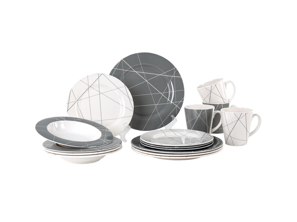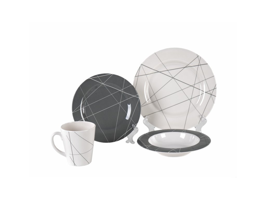 - Táto sada obsahuje všetky nevyhnutné kusy pre pohodlné jedlo – taniere, misky, poháre a príbory – všetko v modernom a elegantnom dizajne, ktorý osvieži každé stolovanie