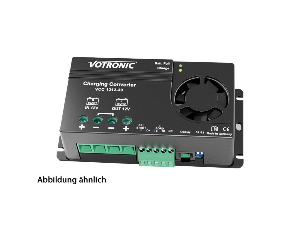 Výkonný nabíjací menič s mikroprocesorom riadenou charakteristikou IUoU na optimálne nabíjanie batérie počas jazdy. Kompenzuje straty napätia pri dlhých kábloch a/alebo malých prierezoch. Vhodný pre kyslé, gélové a AGM batérie a pre lítiové batérie LiFeP04. Snímač teploty je súčasťou dodávky. Nabíjacia kapacita 70 A.Dodatočné parametre