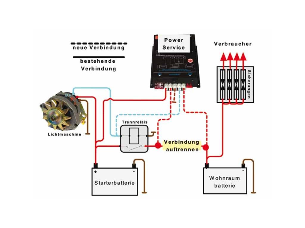 Problém - v bežnom obytnom aute je druhá batéria vždy krátka. Riešenie - Power Service, moderná nabíjačka batérií, ktorá nie je napájaná sieťovým napätím, ale alternátorom.Výkonnostné vlastnosti: