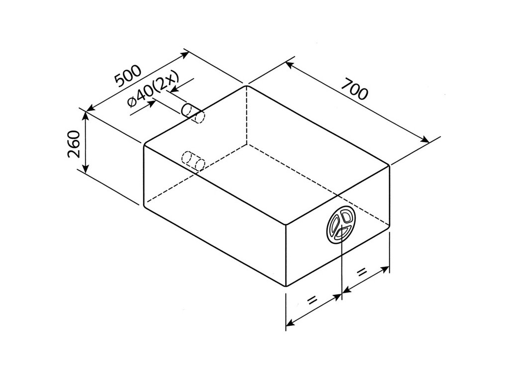 - Vstupný otvor 40 mm v jednej rovine s hornou časťou