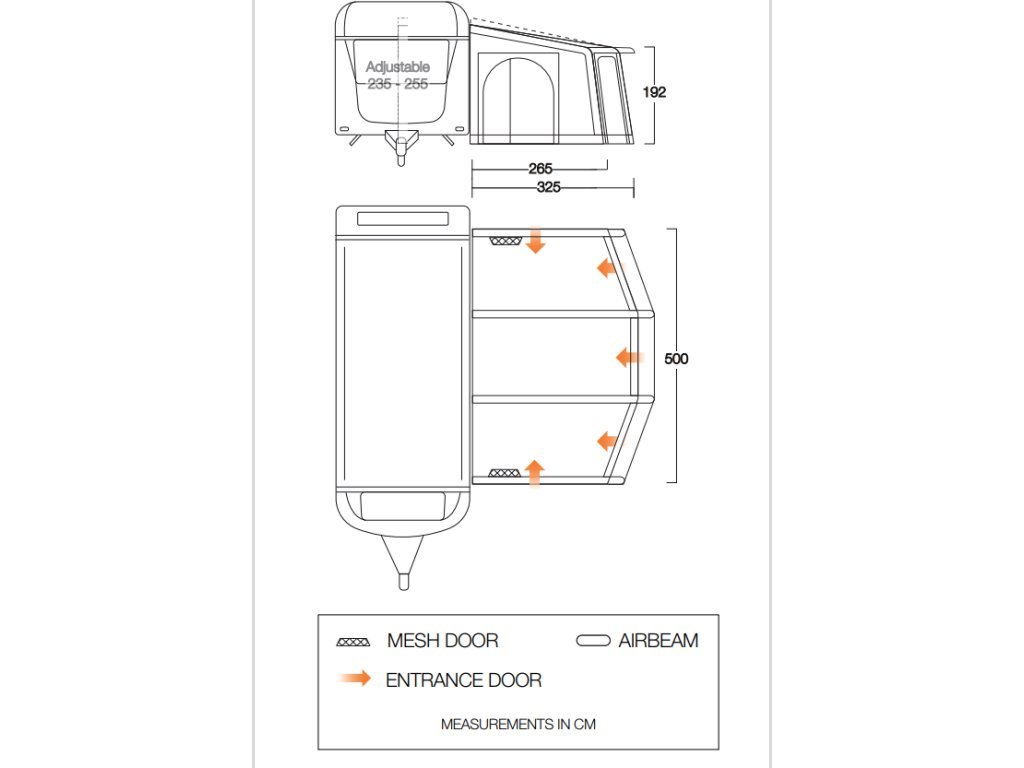 - Patentovaný systém značky Vango-Draught Seal System (pevné tesnenie medzi predstanom a karavanom)