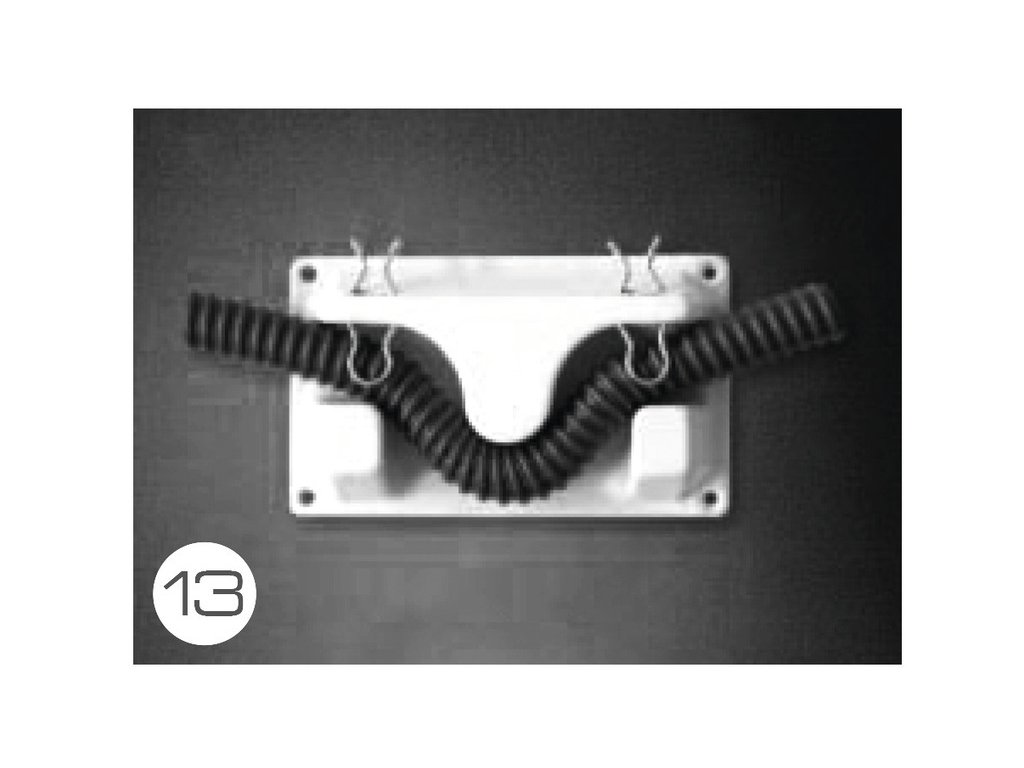 Nástenný držiak na hadice 19-25 mm. Hlboko zasunutá hadica vytvára lapač zápachu. Tým sa zabráni nepríjemnému zápachu z odpadovej nádrže.Svorky zabraňujú vypadnutiu hadice.