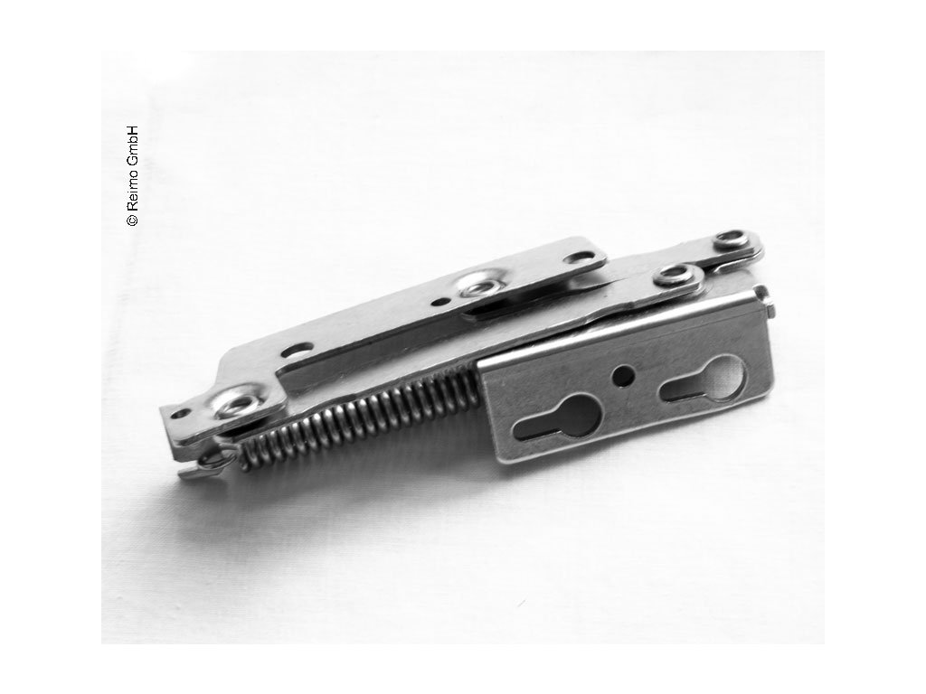 Robustný pánt, ktorý slúži na uchytenie a vyklápanie kuchynských a iných nábytkových dielov v karavane, obytnom vozidle alebo vstavaní.