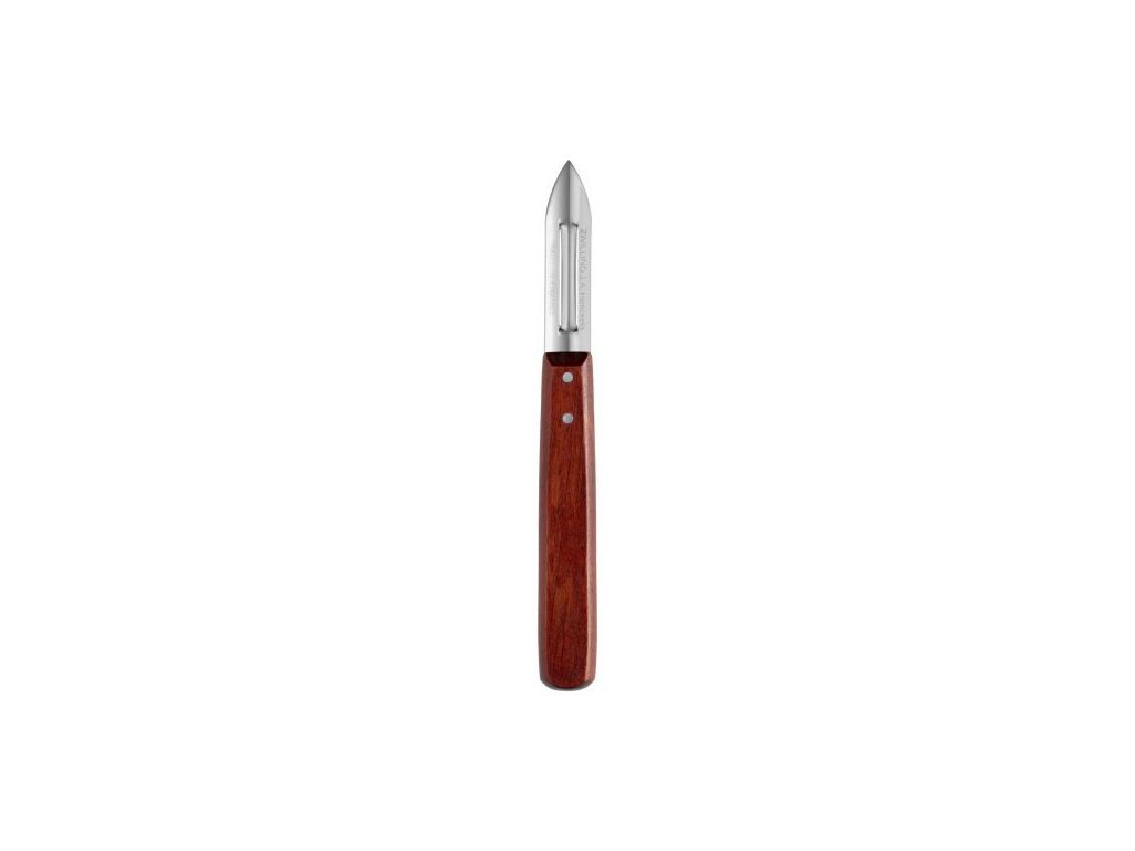 Škrabka z nerezovej ocele s protišmykovou drevenou rukoväťou je mimoriadne odolná.
