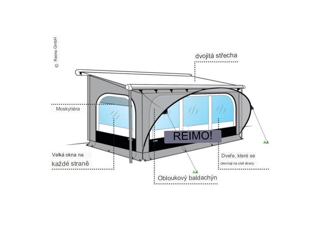 - Vrstva vzduchu vytvorená dvojitou strechou medzi markízou a stanom poskytuje dobrú izoláciu, aby bol stan chladný