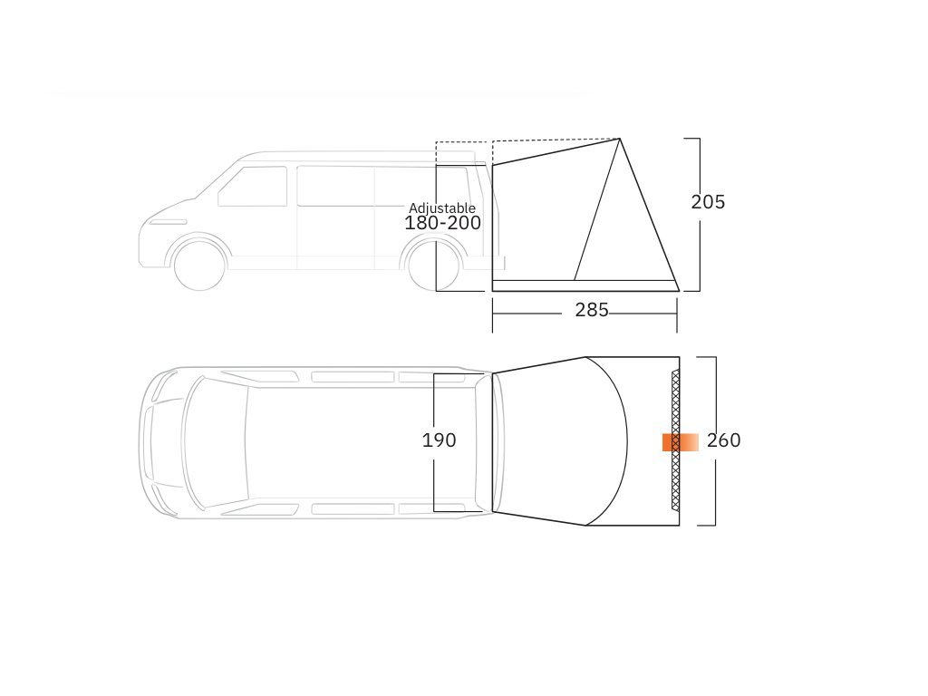 Predstan Vango Arden Tailgate Smoke je praktický a odolný stanový prístrešok, ideálny pre pripojenie k zadnej časti vozidla.