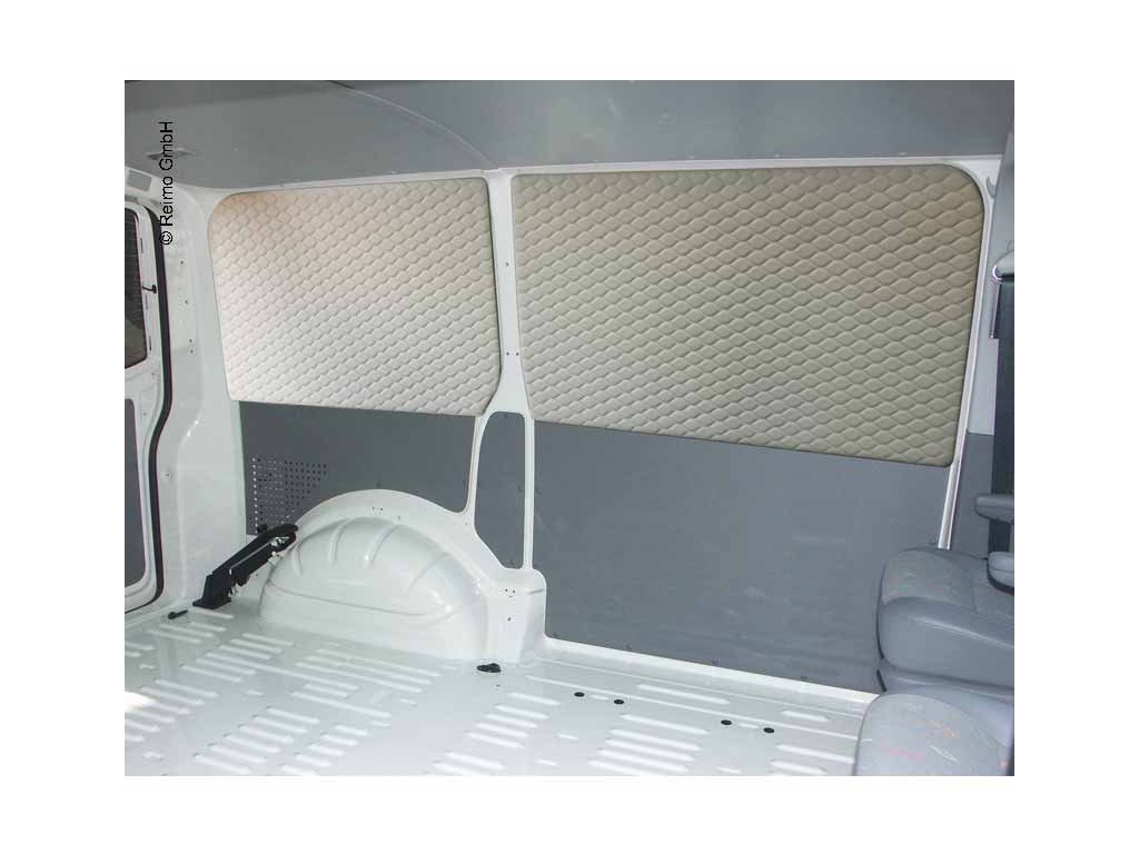 Ľahko sa upevňuje pomocou hmoždiniek do existujúcich otvorov na vozidlách VW T5/T6 (bez zasklenia) alebo pomocou suchého zipsu. Upevňovací materiál je súčasťou dodávky. Materiál je farebne zladený s farbami interiéru VW.