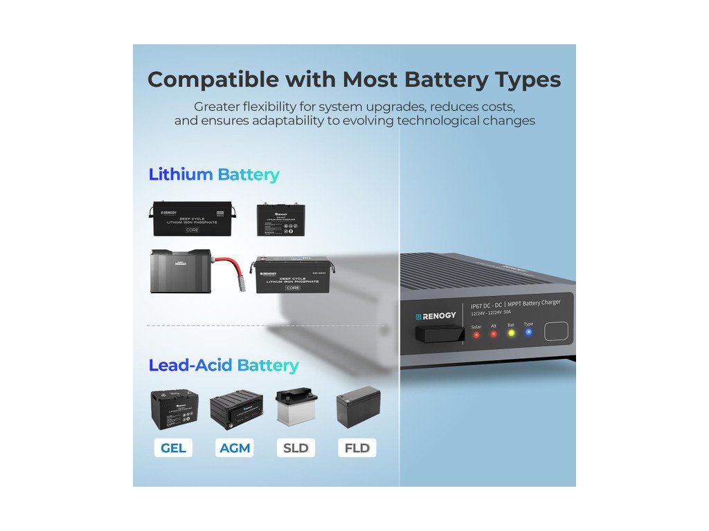 Renogy 12V/24V 50A DC-DC nabíjačka batérií s MPPT- s odolnosťou IP67