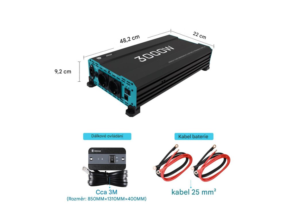 Renogy 3000W 12V čistý sínusový menič napätia, integrovaný automatický stýkač 220V/12V.