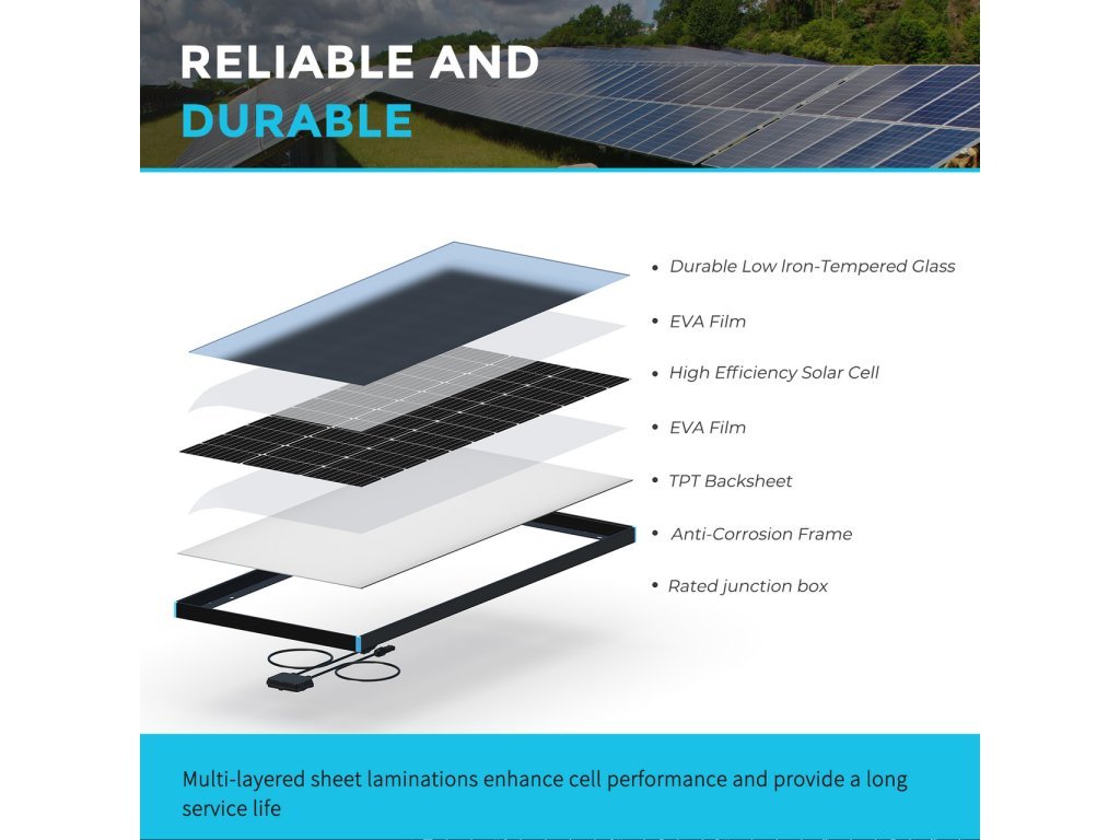 Monokryštalický solárny panel od Renogy je ideálny pre obytné vozidlá, lode, karavany, chaty, chalupy a ponúka vynikajúcu účinnosť.
