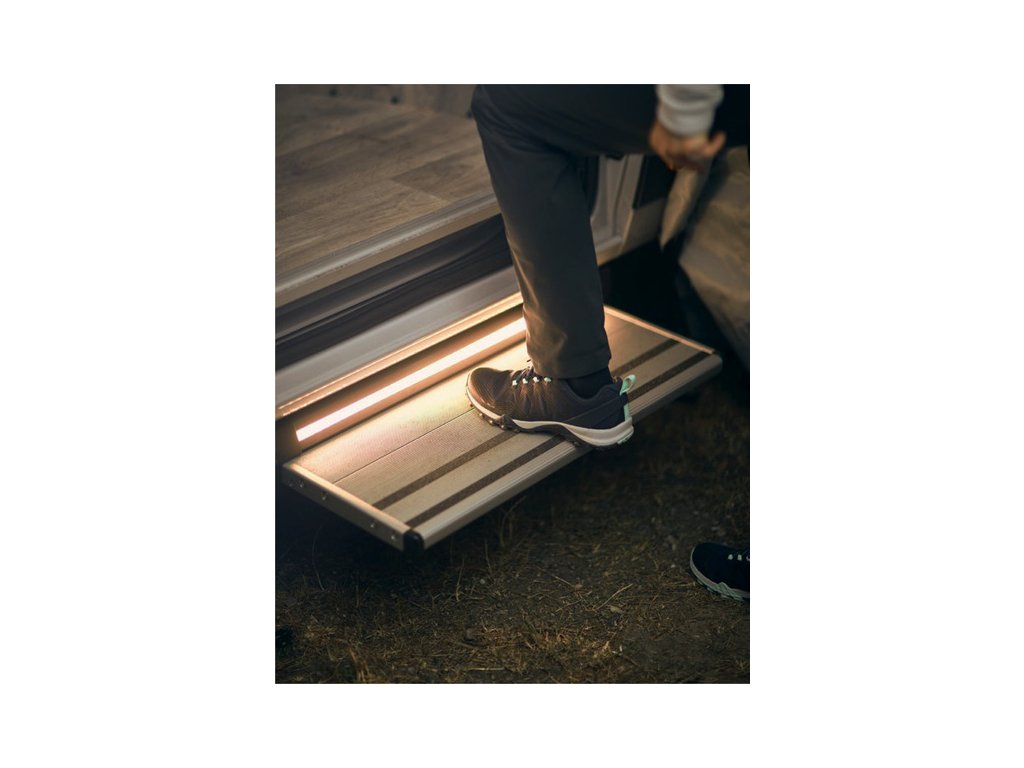- Integrovaný flexibilný LED pásik pre ideálne osvetlenie nášľapnej plochy