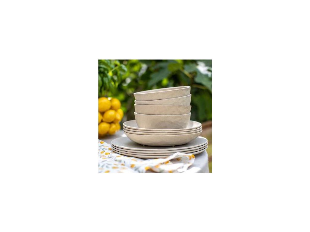 Sada 4 tanierov v krásnom prírodnom dizajne bude skvelým doplnkom do Vášho karavanu, obytného prívesu, vstavby alebo na chatu