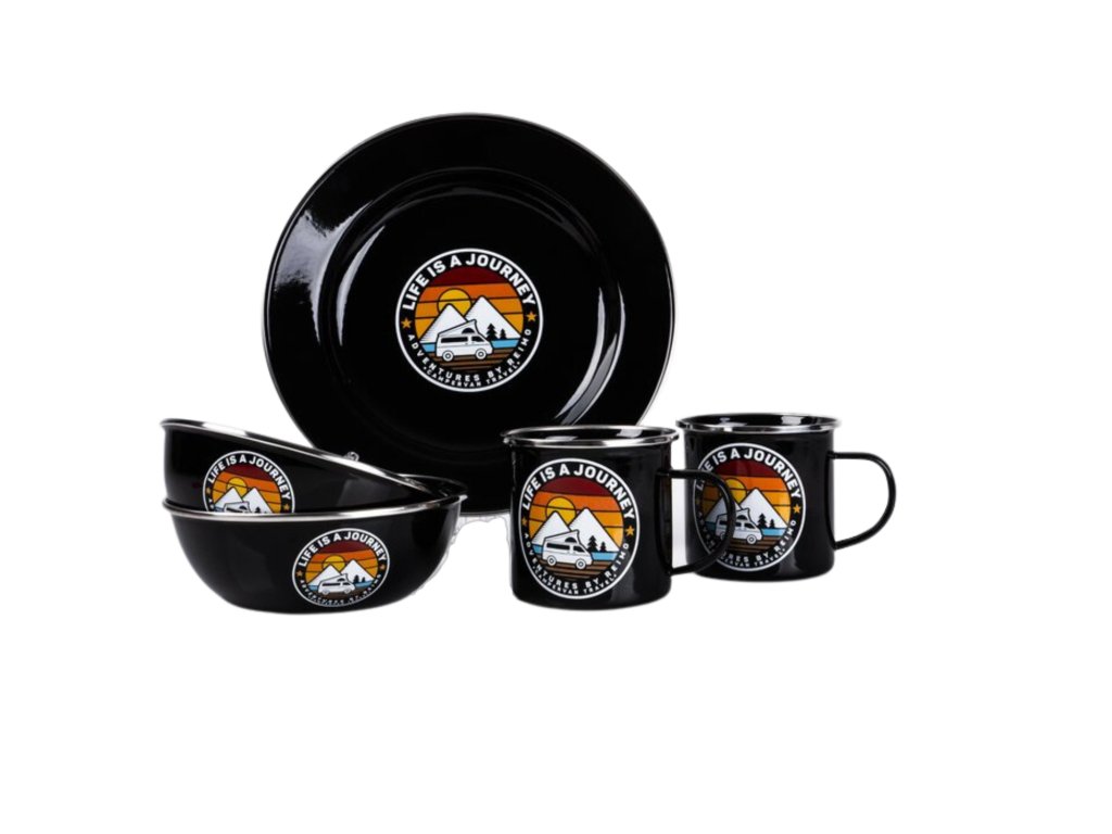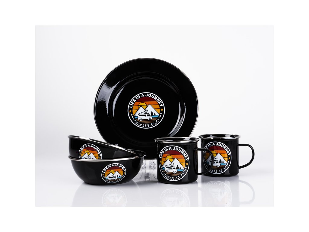Sada smaltovaného riadu LIFE IS A JOURNEY pre 2 osoby