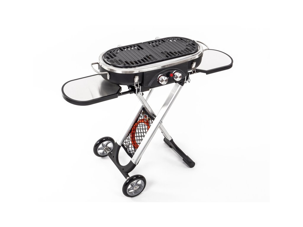 Skladací plynový gril s praktickým vozíkovým systémom a elektrickým zapaľovaním