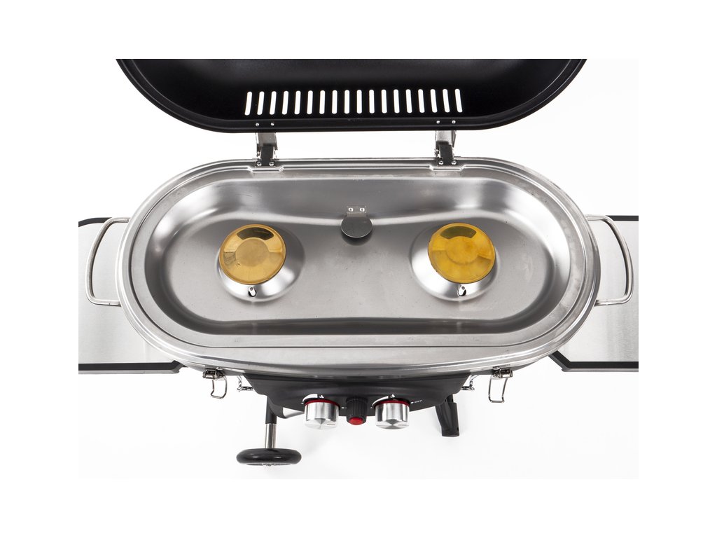 - Vďaka 2 grilovacím policiam možno jedlo na grile dočasne uložiť alebo ho pred podávaním ďalej spracovať