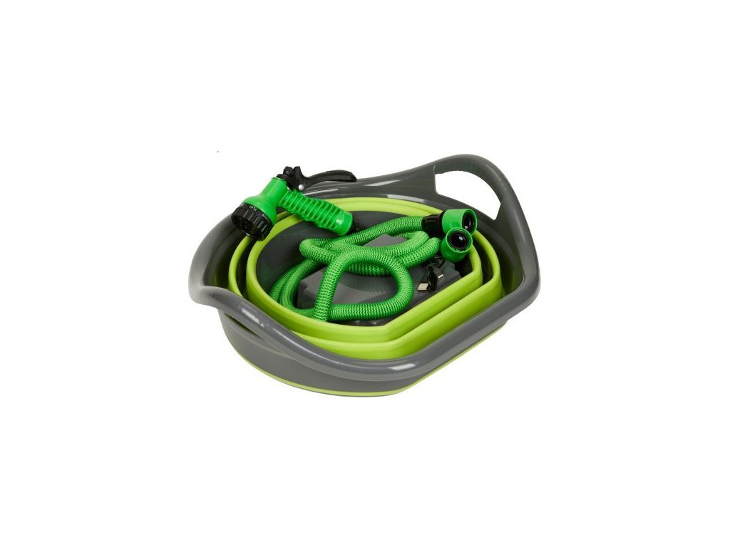 Kempingová sprcha so skladacím vedrom je ideálnym riešením na sprchovanie na ceste.