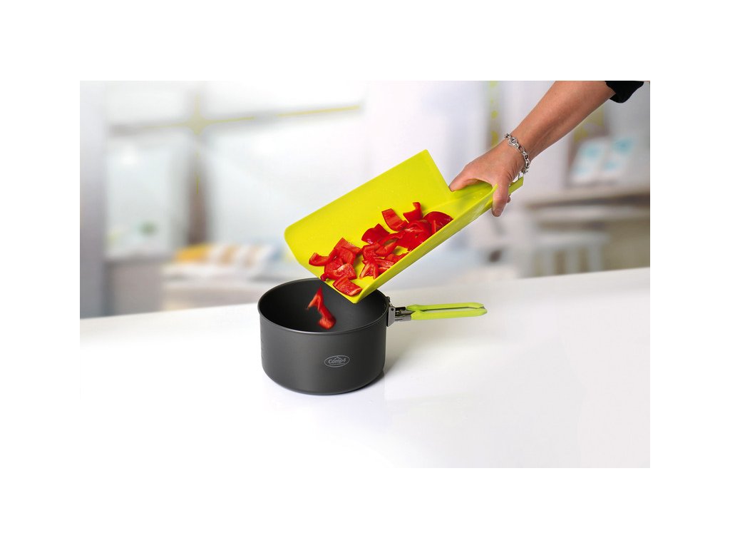 Veľmi praktická skladacia doska na krájanie na bezpečné vhadzovanie prísad do hrnca.