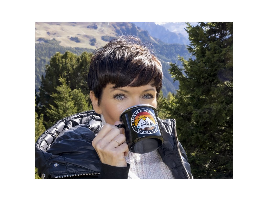 Ranná káva skvele chutí v karavane, v stane, doma, na terase, na festivaloch atď. Smaltovaný hrnček s hrubými stenami a držadlom sľubuje prvotriedny pôžitok z pitia a trvanlivosť. S farebnou potlačou emblému na čiernom smalte. Je vhodný pre potraviny a možno ho umývať v umývačke riadu (pri nízkej teplote).