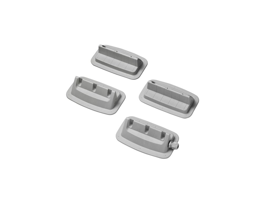Súprava držiakov z vysoko výkonného plastu. V aerodynamickom dizajne so širokým spektrom použitia, napr. pre obytné automobily, karavany alebo ploché strechy. Je mimoriadne pružný (testovaný TÜV) a odolný voči starnutiu. Nie je potrebný žiadny ďalší kryt. S kompaktným povrchom skrutiek pre vysokú odolnosť voči vode a s drenážnymi drážkami v ložiskovej ploche a strediacimi drážkami ako montážnou pomôckou. Nosnosť jedného solárneho modulu je do 7 kg.Dodatočné parametre