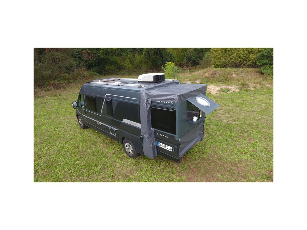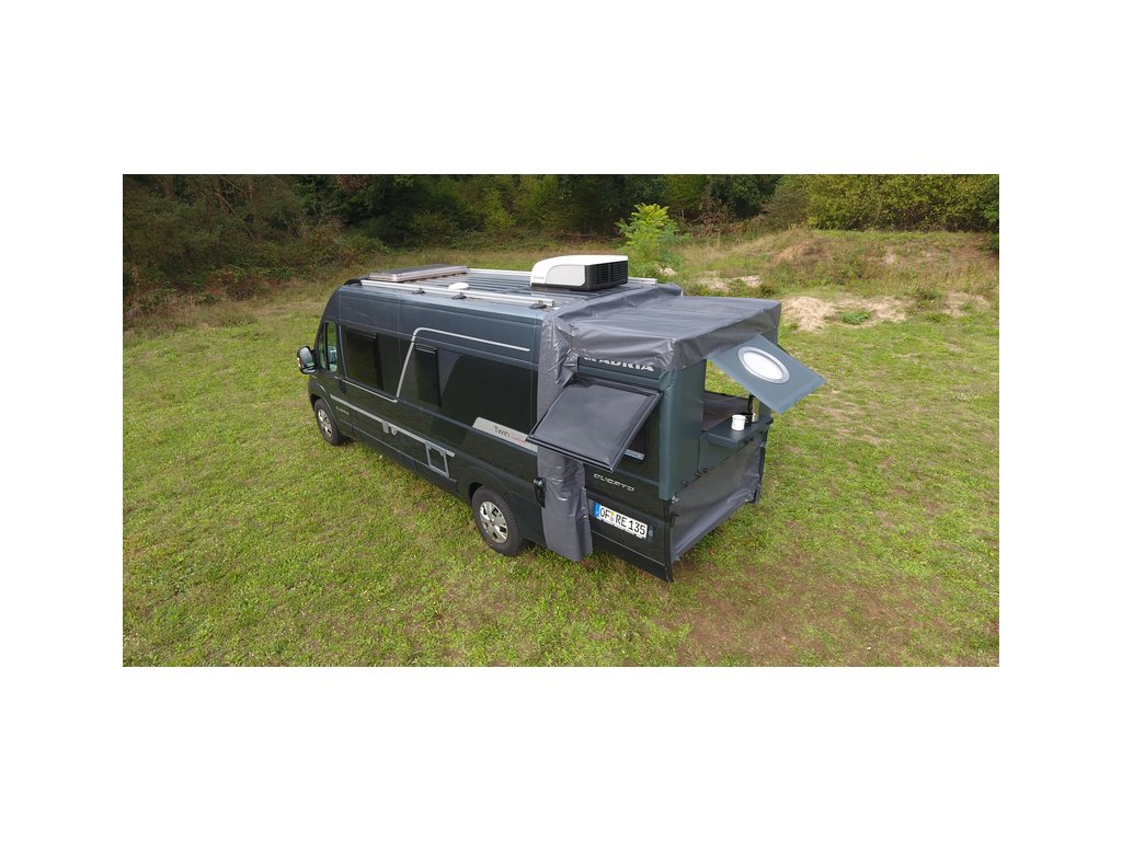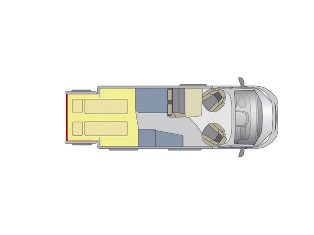 Inovácia na prestavbu lôžka v obytnom automobile z priečneho lôžka na pozdĺžne lôžko. Rozmery postele Š 150/190 x D 210 cm.