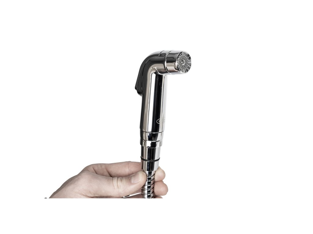 Chrómová sprchová súprava vhodná pre karavan, obytný automobil, jachtu alebo chatu.