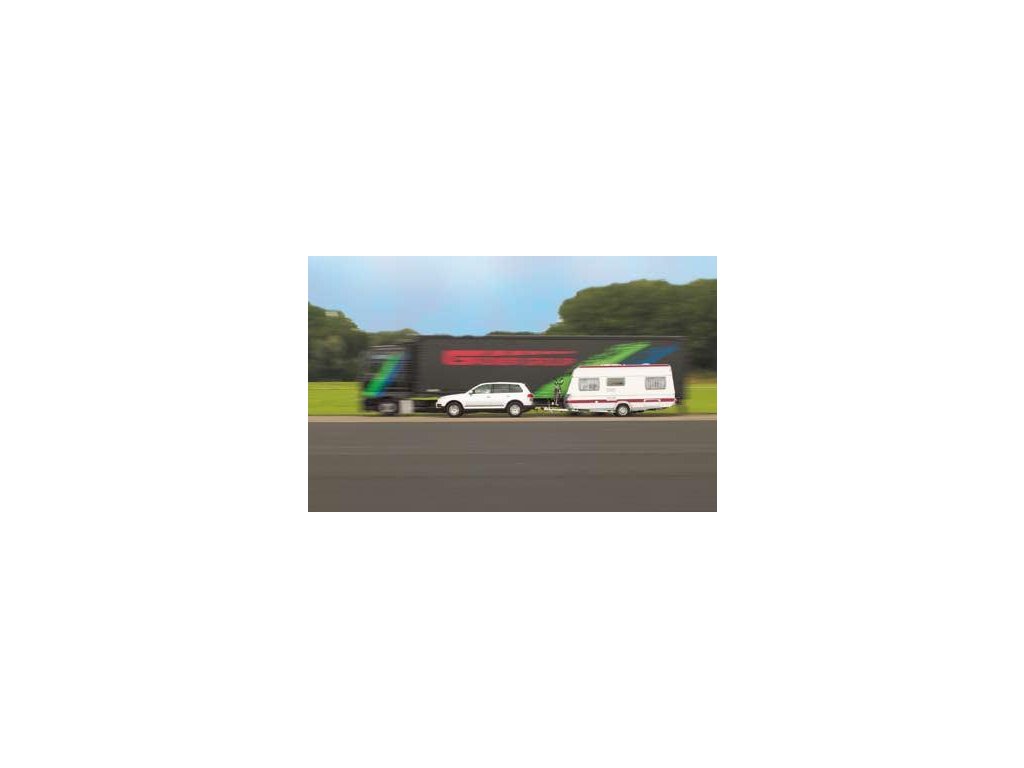 - Přibrzděním se karavan drží jízdního pruhu tzn. O tom sa nedá nič povedať, keď ide o prudké brždenie, súčasne žiadne narušenie predbiehajúceho manévru.