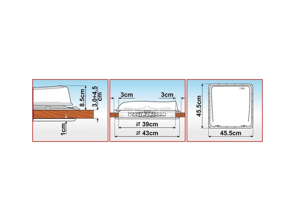 - Rozmery výrezu: 360 x 360 / 400 x 400 mm