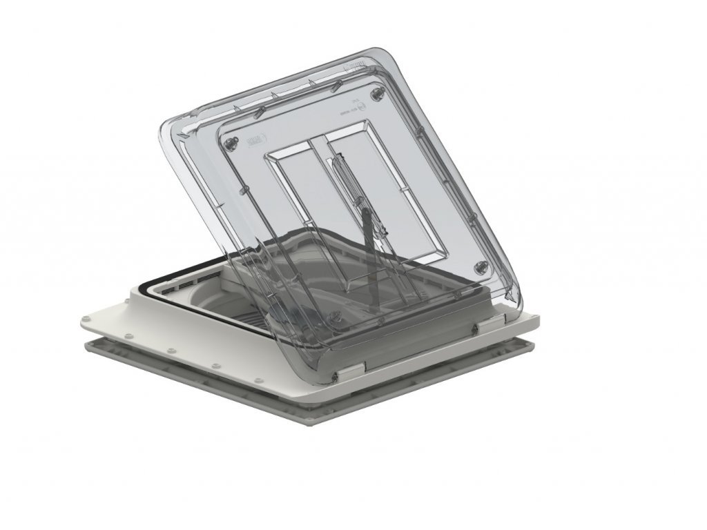 Strešné okno Fiamma Turbo Vent s priehľadným kryštalickým sklom.