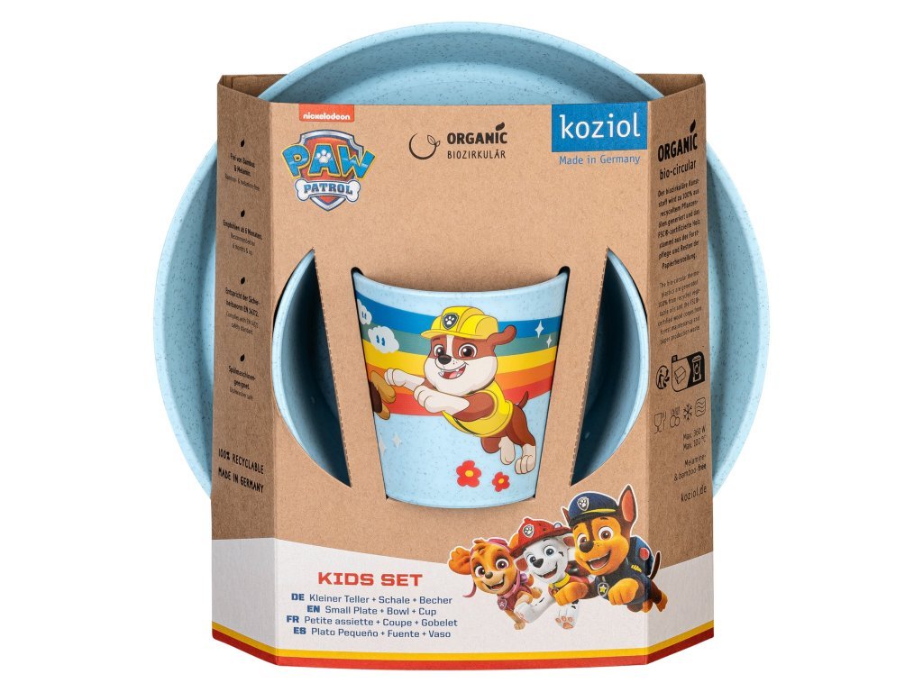 Veselé detské riad Koziol zo 100% bio-cirkulárneho plastu s dizajnom Tlapkové patroly.