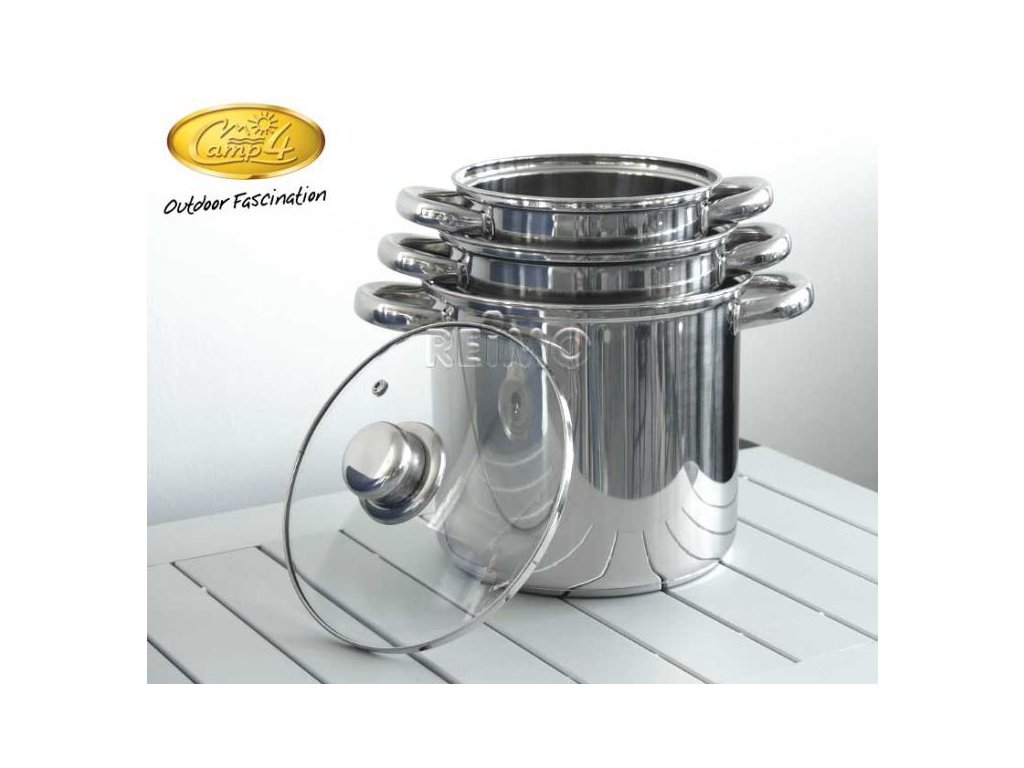 Súprava hrncov Camp4 z nehrdzavejúcej ocele so sklenenou pokrievkou - 6 kusov