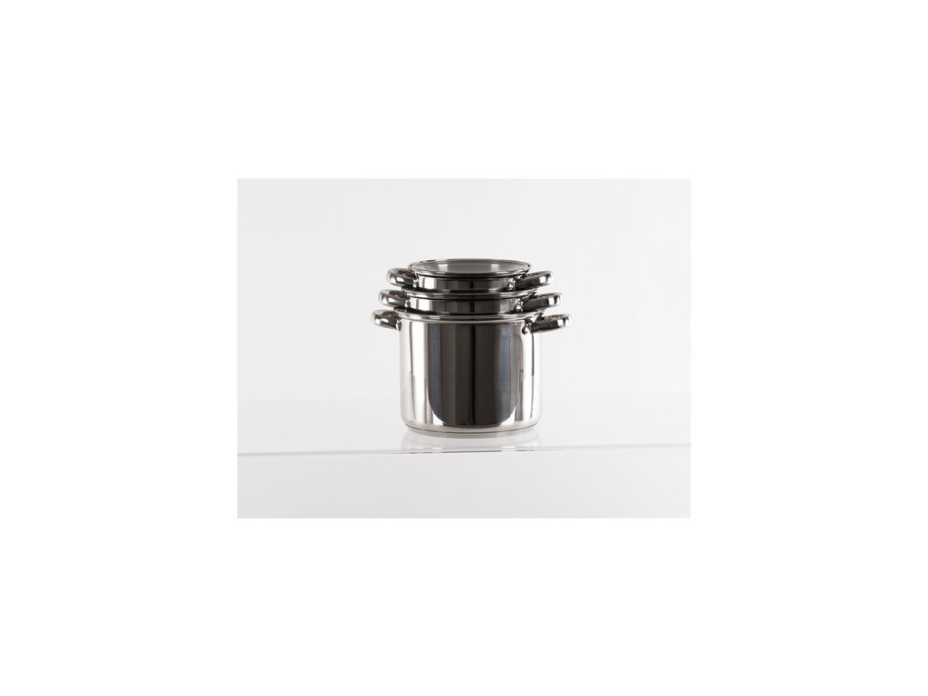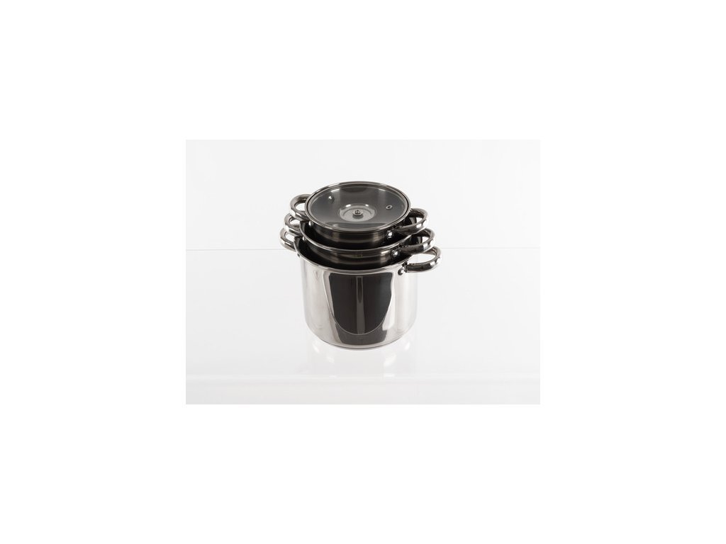 Sada 3 nerezových kempingových hrncov vrátane sklenených pokrievok - spolu 6 kusov.