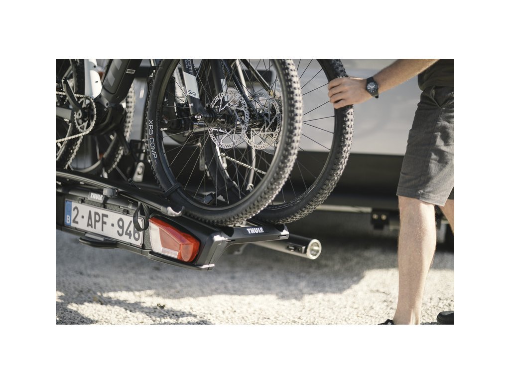 Thule VeloSwing je certifikované ťažné zariadenie, ktoré vám umožní ťahať prívesy alebo iné príslušenstvo k ťažnému zariadeniu až do hmotnosti 3 000 kg